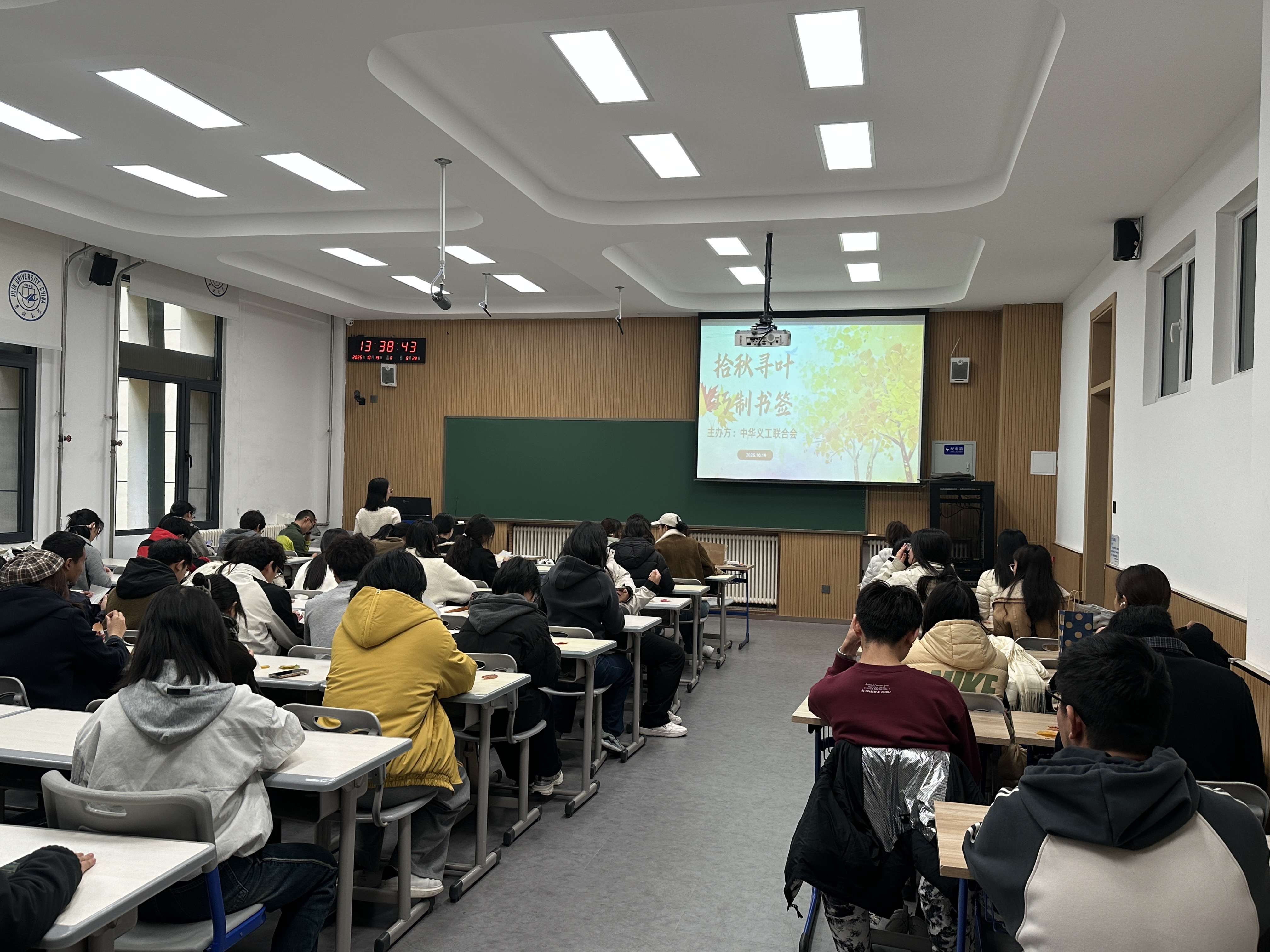 拾秋寻叶巧制书签,吉大学子定格秋日诗意。10月19日,吉林大学李四光楼111教室内暖意融融、创意涌动,“拾秋寻叶巧制书签”活动在此顺利开展。作为承载校园厚重历史与科学家精神的标志性建筑,李四光楼为这场融合自然之美与手工创意的活动赋予了独特文化内涵,活动启动仅一小时,便吸引近百名学子踊跃参与。