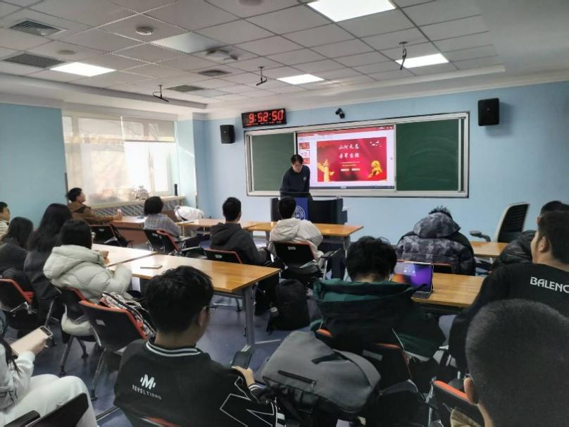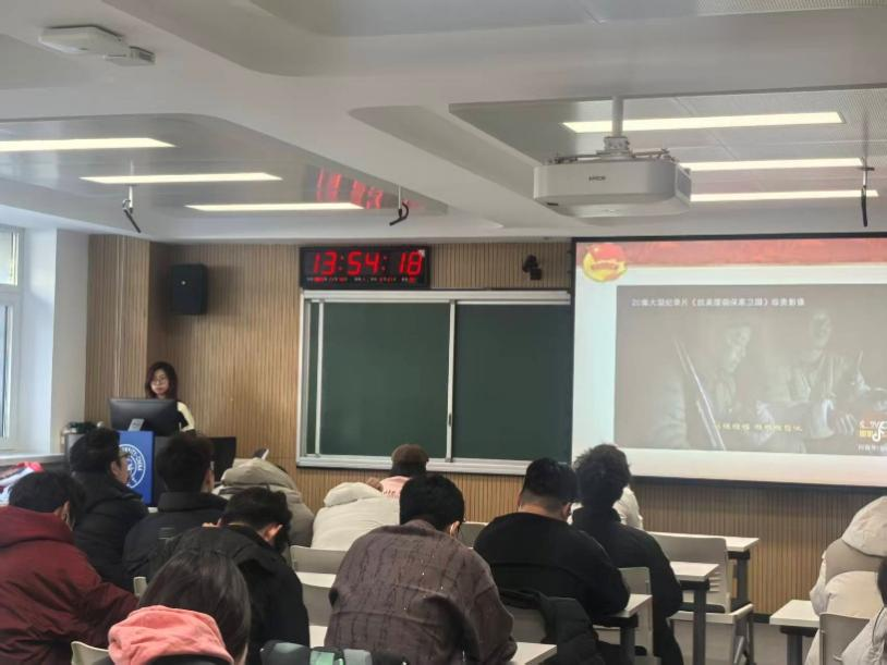 团课期间,团支书们首先带领大家系统回顾了抗美援朝战争的时代背景与战略决策,讲解了朝鲜战场的战局变化、新中国面临的安全危机,以及党中央作出“抗美援朝,保家卫国”战略决断的历史必然性。系统的理论学习,让同学们对这场“立国之战”的必要性与正义性有了更全面深刻的认知。随后,学习重点转向艰苦卓绝的战斗历程。团支书们通过讲解两水洞、长津湖、上甘岭等关键战役的战斗细节,让同学们真切感受到了志愿军将士不畏强敌、舍生忘死的伟大精神。